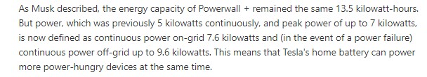 이전 버전과의 큰 차이는 13.5kwh의 용량은 그대로이지만, 전력을 많이 소모하는 장치를 동시에 더 많이 가동할 수 있다고 합니다.