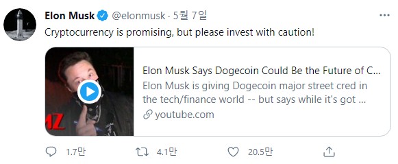 3. 머스크가 암호화폐는 유망하지만, 투자시 꼭 주의하여 할 필요가 있다고 언급했습니다.