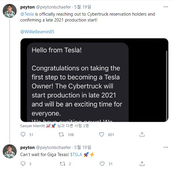 1. 사이버 트럭을 주문한 홀더들에게 '2021년 말에 사이버 트럭을 생산할 것이라는 메세지가 보내졌다고 합니다.