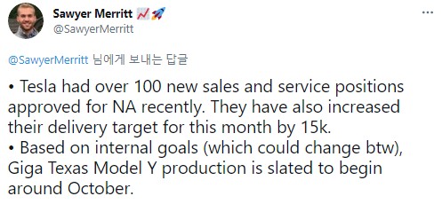 1. 트위터 @Sawyer Merritt 님 글을 공유합니다.
