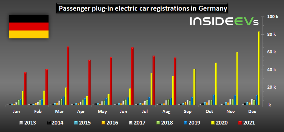 In August, new passenger car registrations in Germany decreased by 23% year-over-year to 193,307. Plug-in sales continue to grow, expanding their market share.