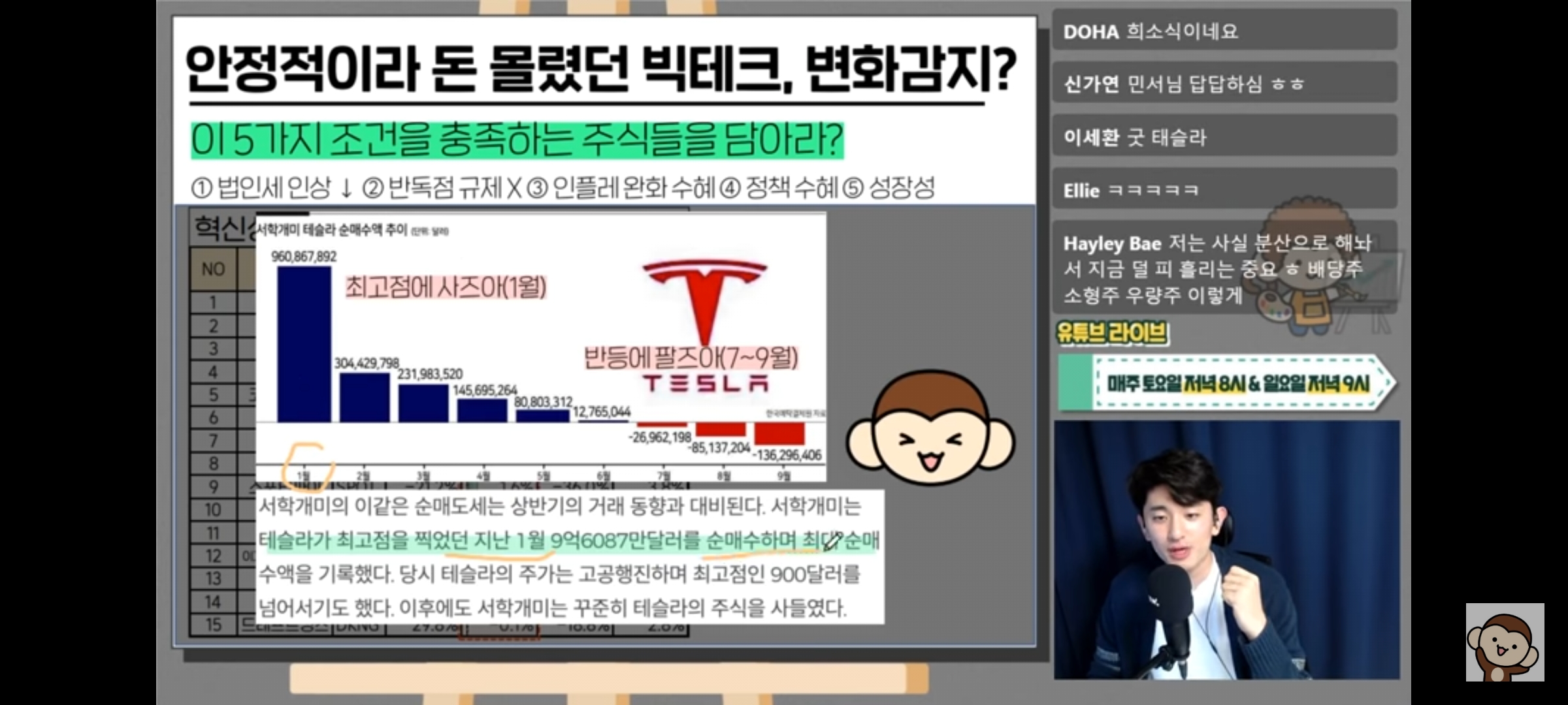 테슬라에 투자했던 우리 나라 개인투자 분들이 가장 고점에 들어가서 주가가 살짝 반등하자 매도해 버리는 모습이네요.