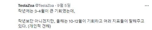 따라서 테슬라 주주들에게도 10월에서 12월까지 좋은 기회로 보고 있는 것입니다.