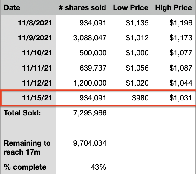 3. 머스크가 어제는 934,091 주를 매각했습니다.