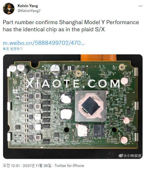 2. 기가 상하이에서 생산되는 모델Y 퍼포먼스에 들어가는 칩의 부품 번호를 확인했는데, 이는 모델S/X 플레드에 장착되는 동일 칩이라고 합니다.