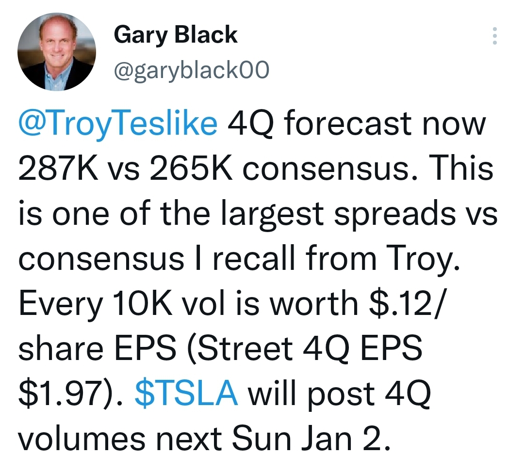 2. 트로이님의 예측 상향 트윗에 개리 블랙님이 1만대당 eps 가 $ 0.12 라고 리트윗 했습니다.