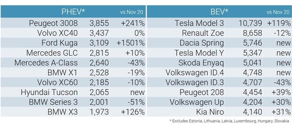 4. 올해 11월 유럽에서 가장 많이 팔린 전기차는 모델3(10,739대)였습니다.