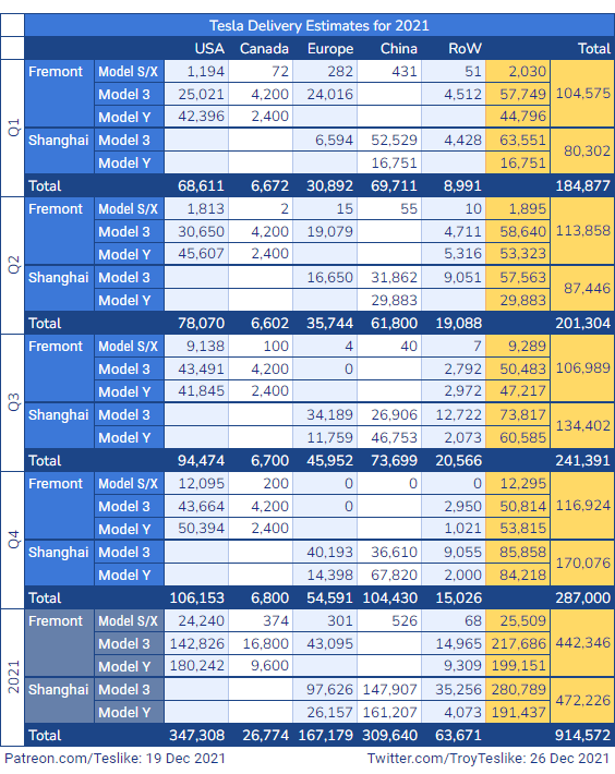1. 트로이님이 기존 4Q2021 딜리버리 예측을 276k에서 287k 로 상향했습니다.
